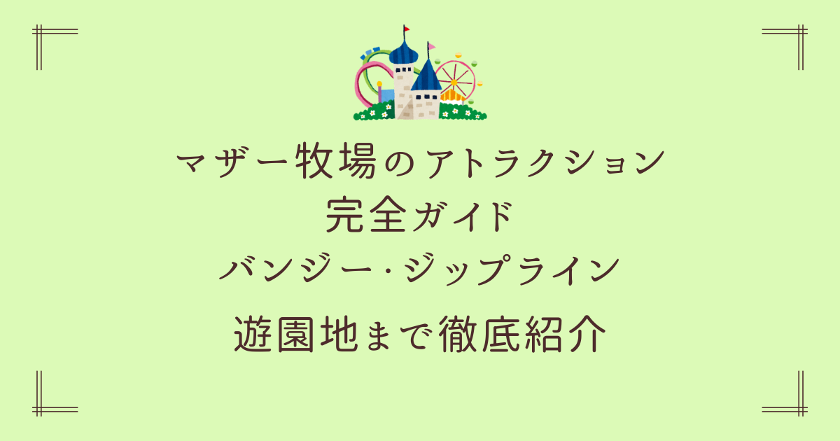 この記事では、マザー牧場で楽しめる主なアトラクションを一覧で紹介し、それぞれの特徴や楽しみ方をわかりやすくまとめました。